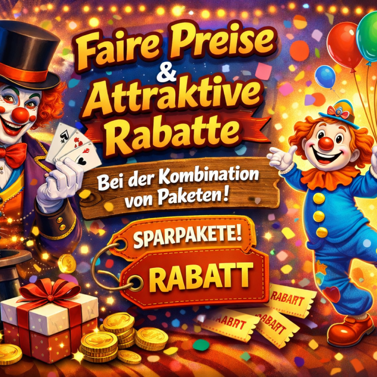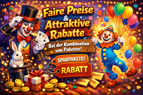 Wenn Sie mehrere Pakete für dieselbe Feier buchen, erhalten Sie attraktive Rabatte. So können Sie ein noch abwechslungsreicheres Programm zu einem besonders guten Preis zusammenstellen.